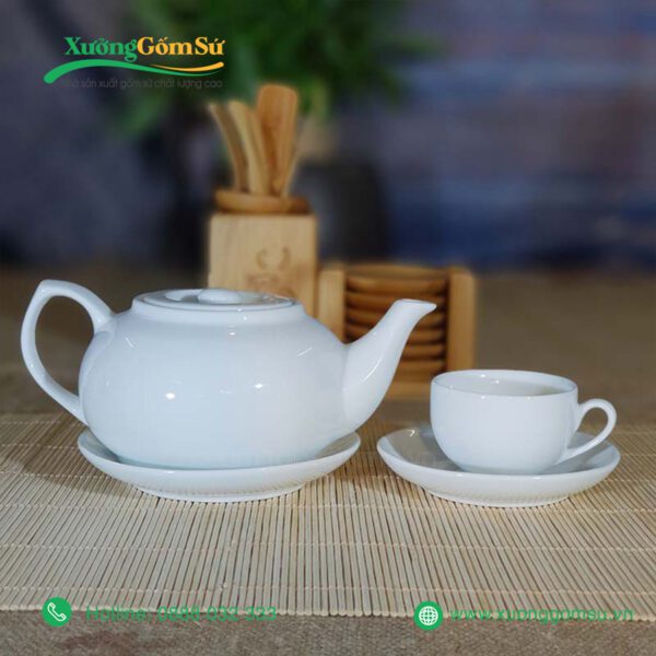 | Tên Sản phẩm | Bộ Ấm Chén Sứ Trắng Dáng Lõm |