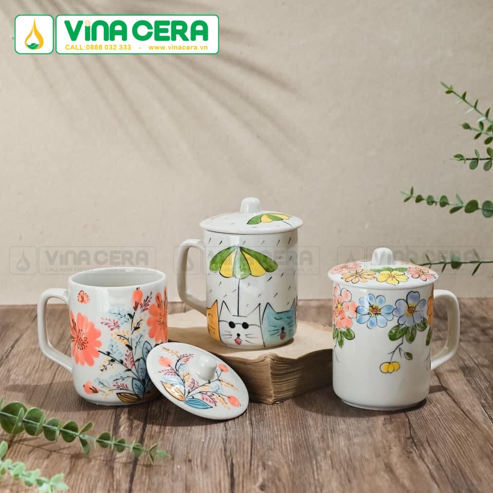 Ly sứ có nắp là một sản phẩm rất tiện lợi, giúp giữ nhiệt độ của đồ uống lâu hơn và tránh bụi bẩn. Quy trình sản xuất loại ly này tương tự như ly sứ thông thường, nhưng cần thêm bước thiết kế nắp sao cho vừa vặn và chắc chắn.