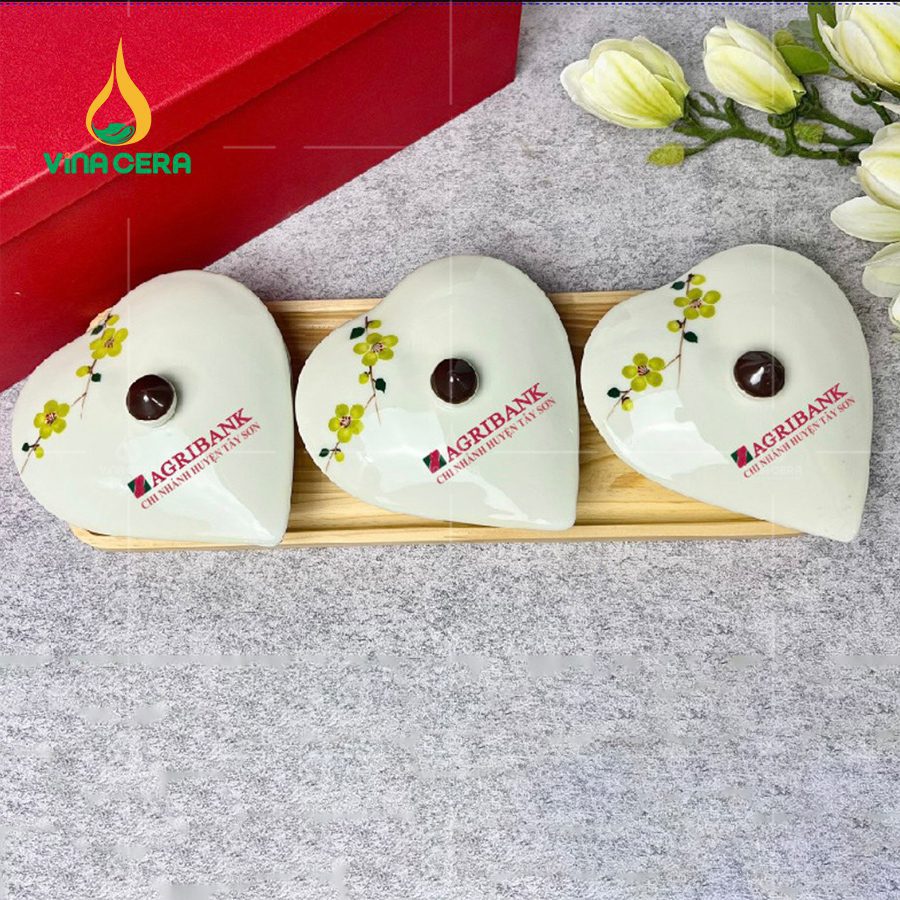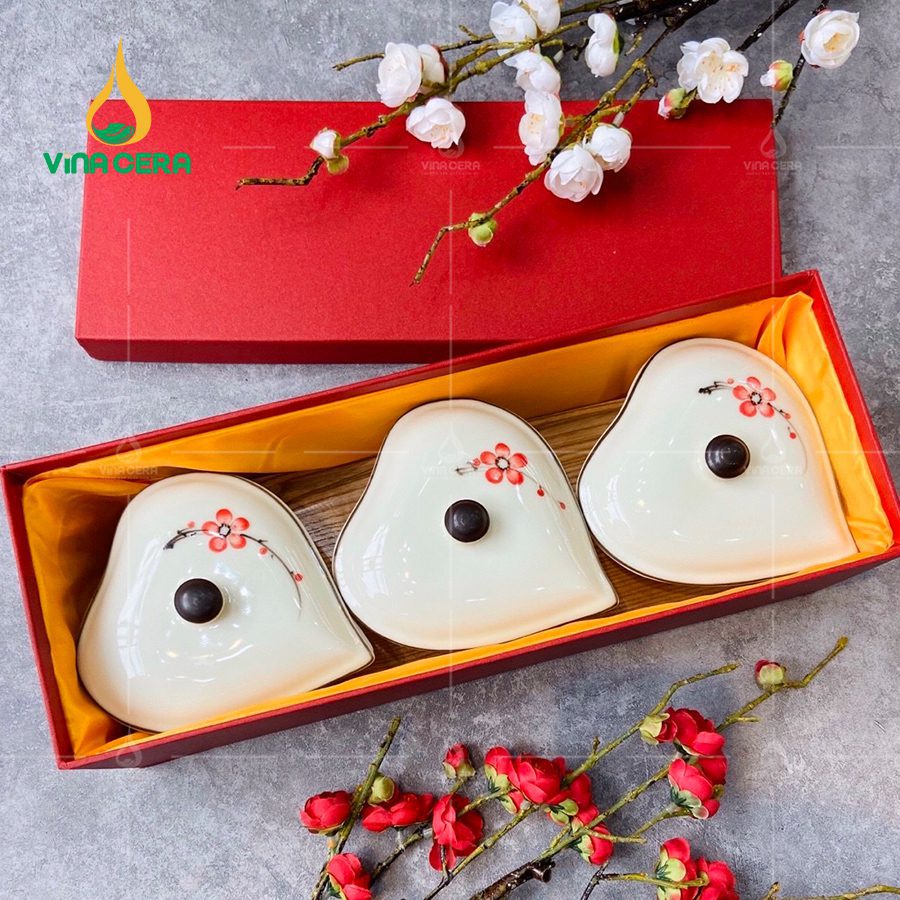 Bộ khay bánh mứt kẹo Bát Tràng hình trái tim
