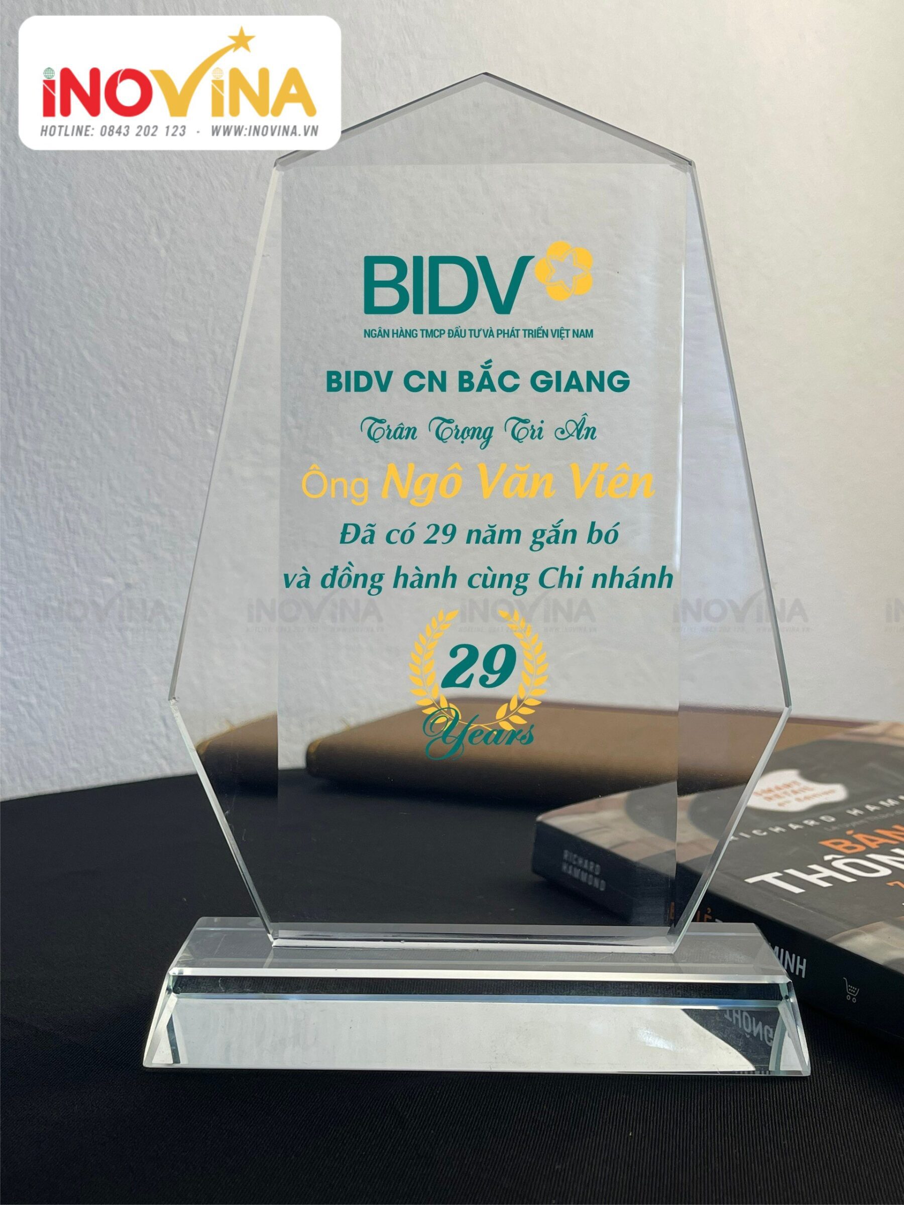 Tại Xưởng Gốm Sứ, chúng tôi tự hào giới thiệu nhiều mẫu kỷ niệm chương đa dạng về chất liệu và hình dáng. Kỷ niệm chương pha lê in logo là một lựa chọn phổ biến. Chất liệu pha lê trong suốt, lấp lánh tạo nên vẻ đẹp sang trọng và đẳng cấp. Logo được in sắc nét, tạo điểm nhấn đặc biệt cho sản phẩm.