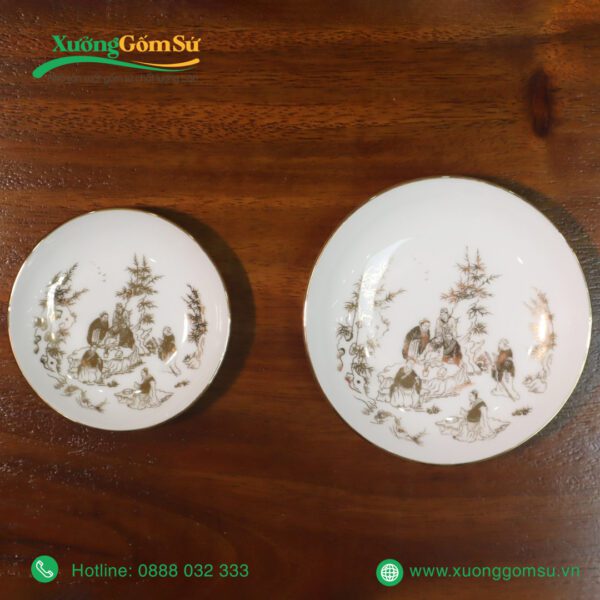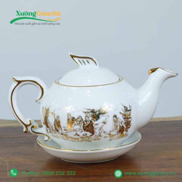 - Trúc Lâm Thất Hiền là bảy vị học giả trong truyền thuyết dân gian. Tượng trưng cho sự trường thọ, thanh cao và trí tuệ. Hình ảnh các vị học giả được khắc họa tinh xảo trên thân ấm và chén, tạo nên một bức tranh sinh động và ý nghĩa. Mang đến sự bình an, may mắn và tài lộc cho gia chủ.