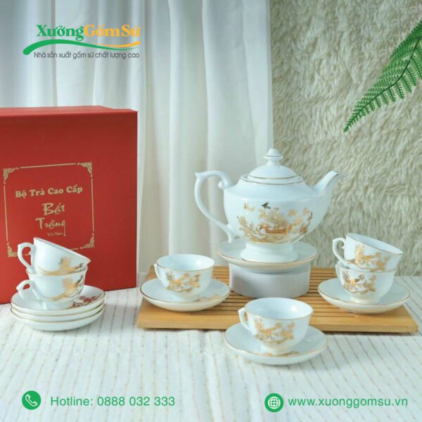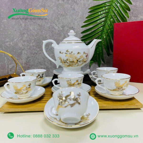 - Bộ ấm chén vẽ vàng in logo là món quà ý nghĩa thể hiện sự quan tâm, trân trọng của doanh nghiệp đối với khách hàng, đối tác, nhân viên. Mỗi lần sử dụng bộ ấm chén, người nhận sẽ nhớ đến doanh nghiệp, góp phần củng cố mối quan hệ.