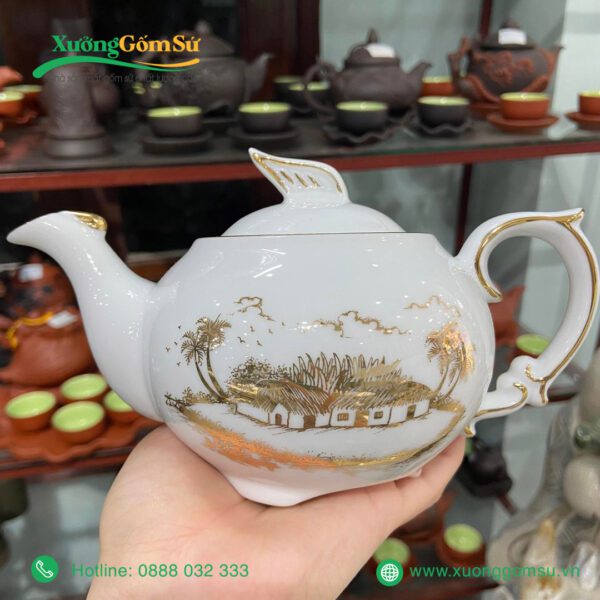 Bộ Ấm Chén Phượng Hoàng Vẽ Cảnh Quê Vàng Kim – XGS AC 47