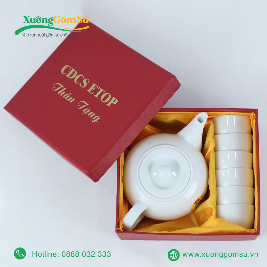 Bộ ấm chén in logo là món quà tặng thiết thực và hữu ích. Giúp doanh nghiệp thể hiện sự quan tâm, trân trọng và tri ân đối với khách hàng, từ đó góp phần xây dựng mối quan hệ tốt đẹp, bền vững.