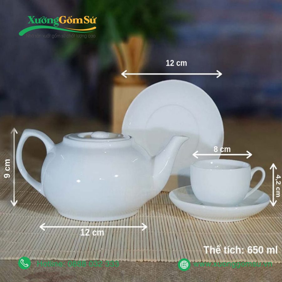 | Tên Sản phẩm | Bộ Ấm Chén Sứ Trắng Dáng Lõm |