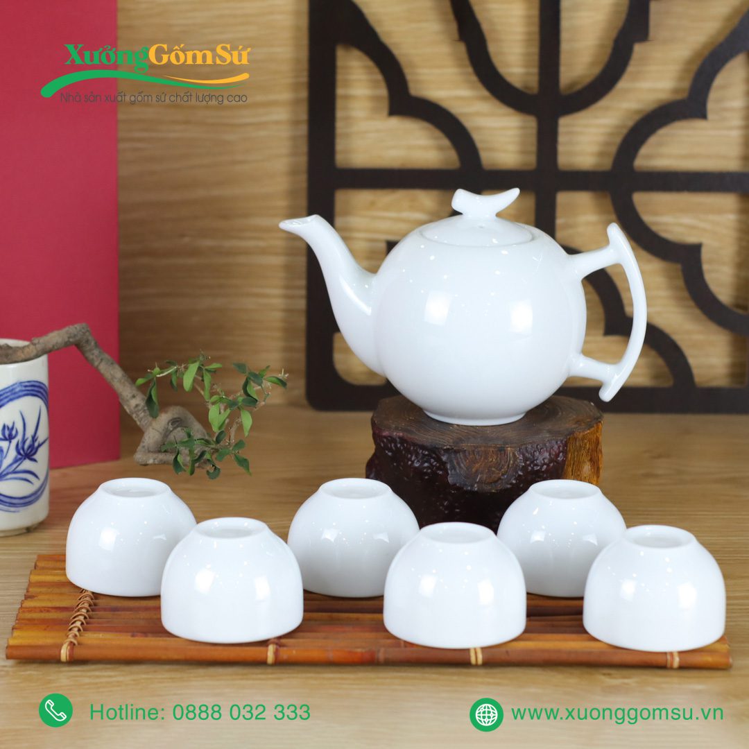Bộ Ấm Chén Sứ Trắng Dáng Trăng Khuyết – XGS AC 09