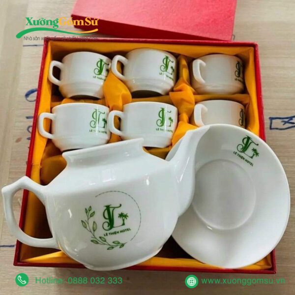 Ấm chén trà được sử dụng hàng ngày, với thiết kế màu sắc và logo doanh nghiệp đồng bộ, bắt mắt sẽ là một hình thức quảng bá thương hiệu vừa tiết kiệm chi phí, vừa hiệu quả