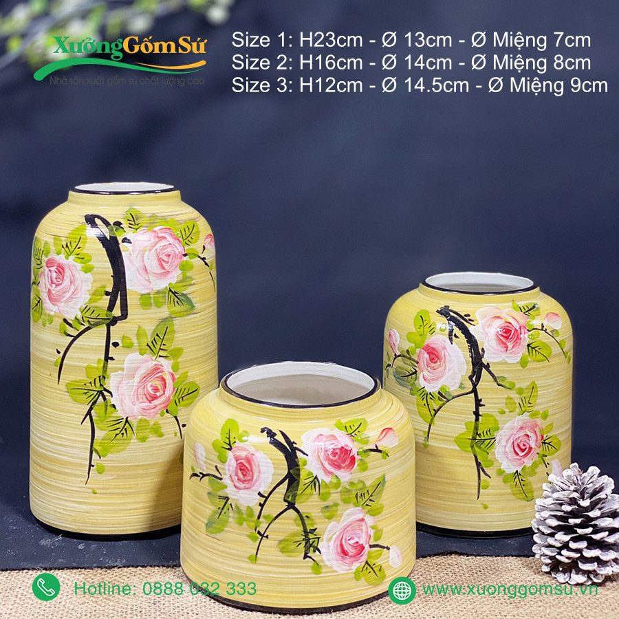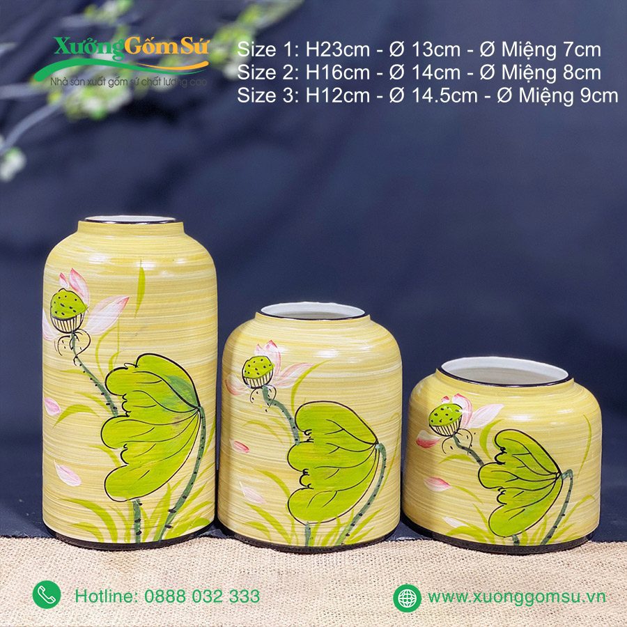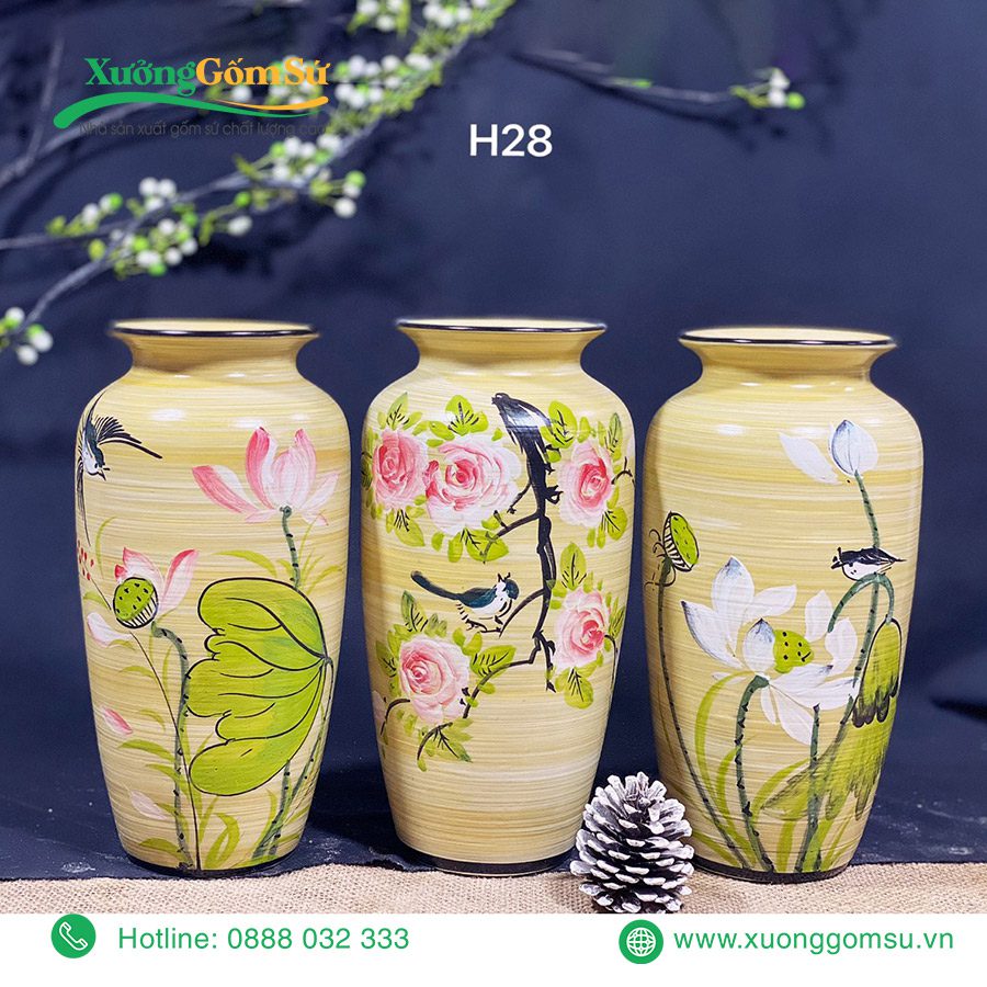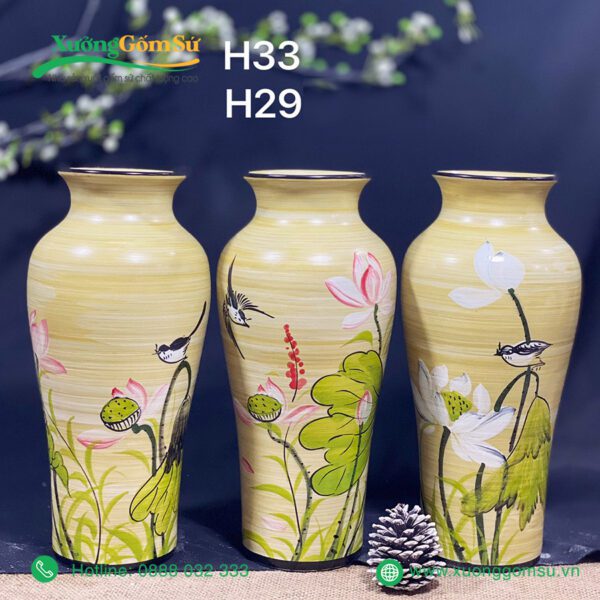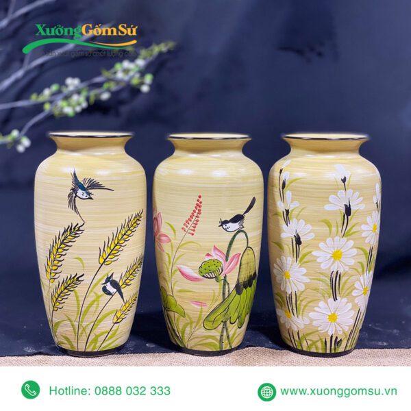 | Tên Sản phẩm | Lọ Hoa Gốm Bát Tràng Men Vàng Hoa Văn Vẽ Tay |