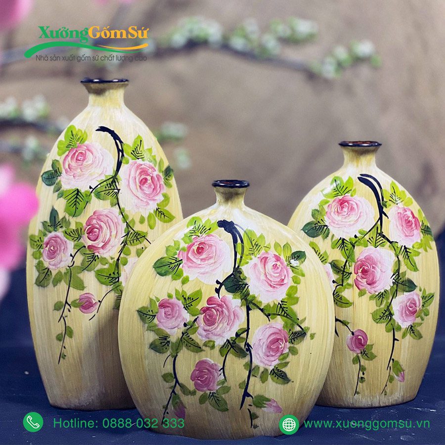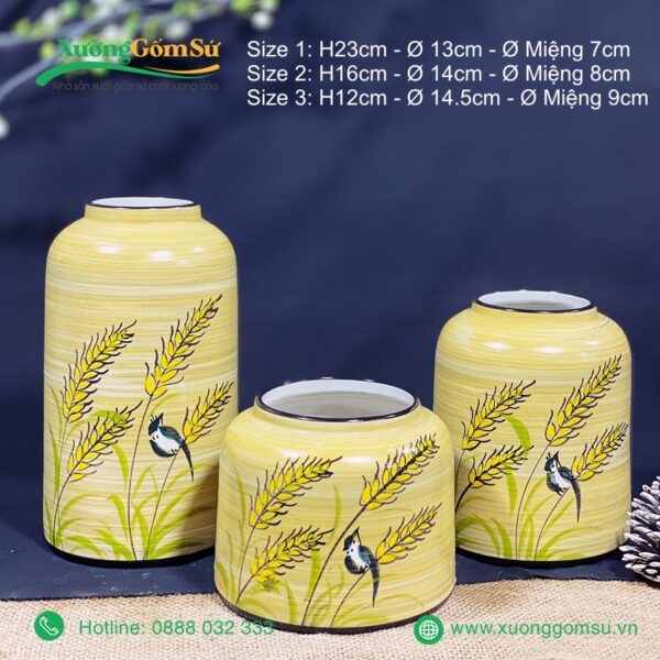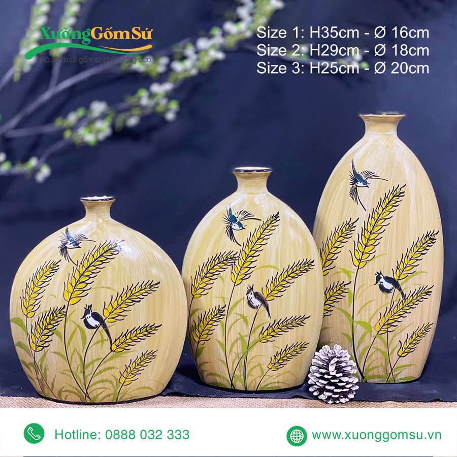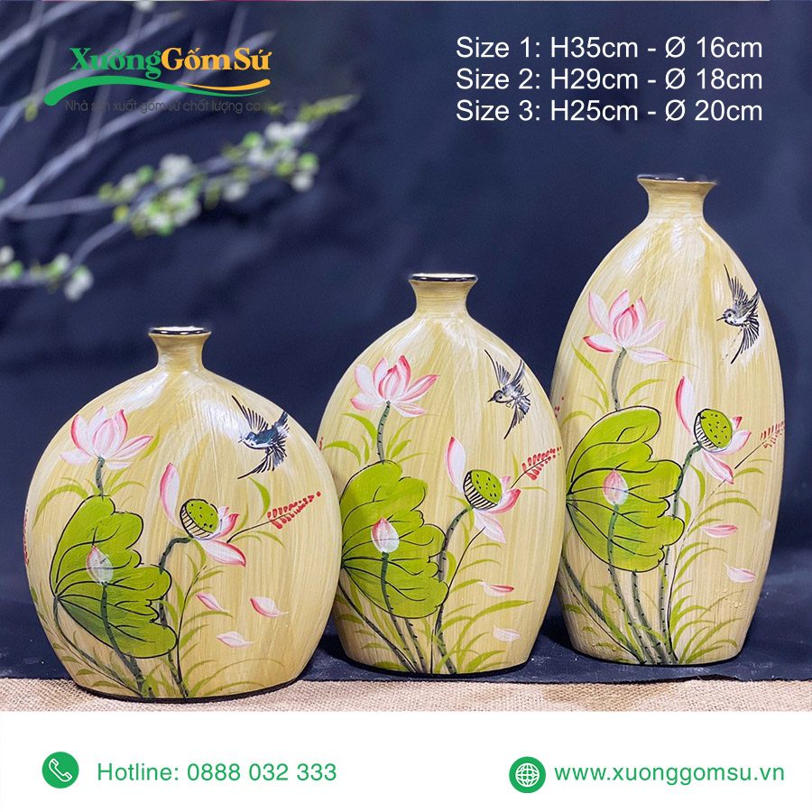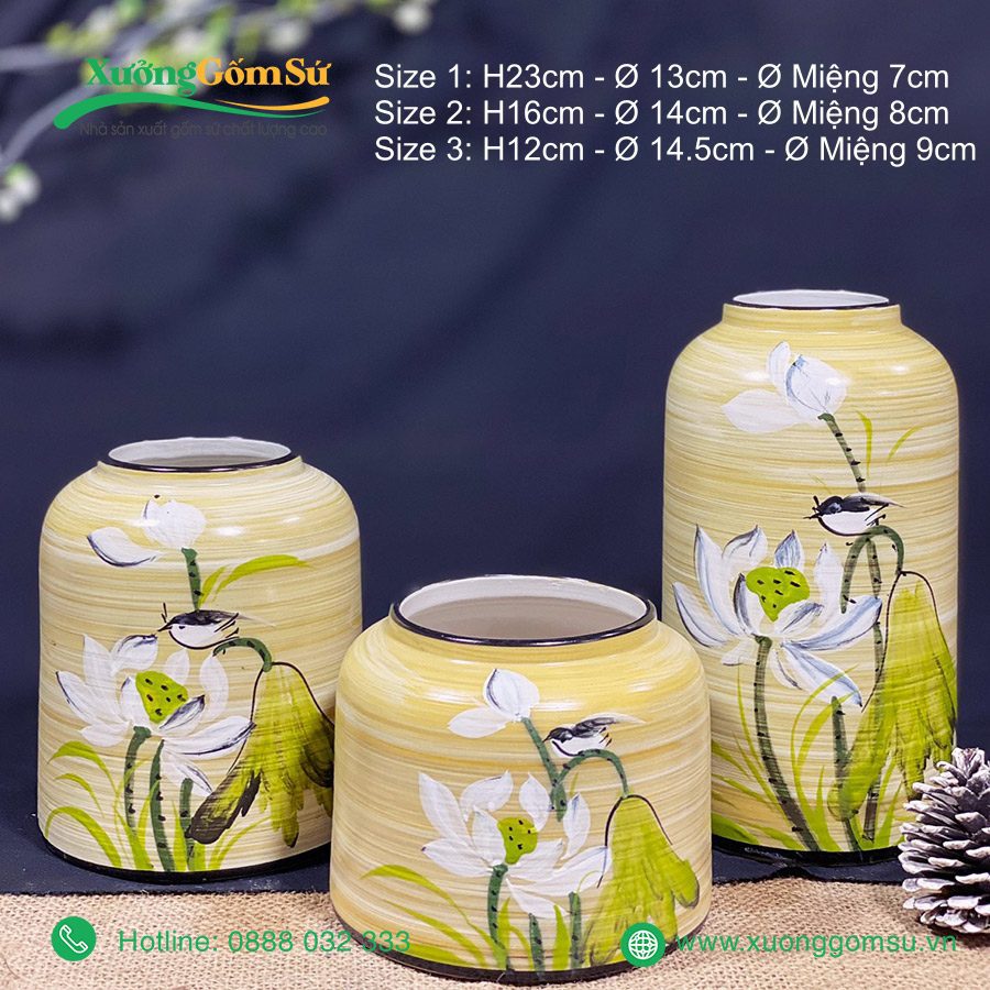 | Tên Sản phẩm | Lọ Hoa Gốm Bát Tràng Men Vàng Hoa Văn Vẽ Tay |