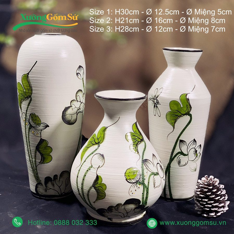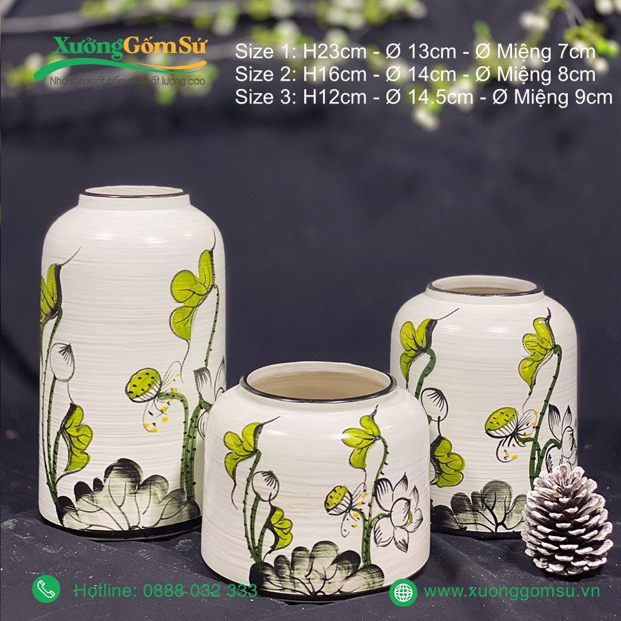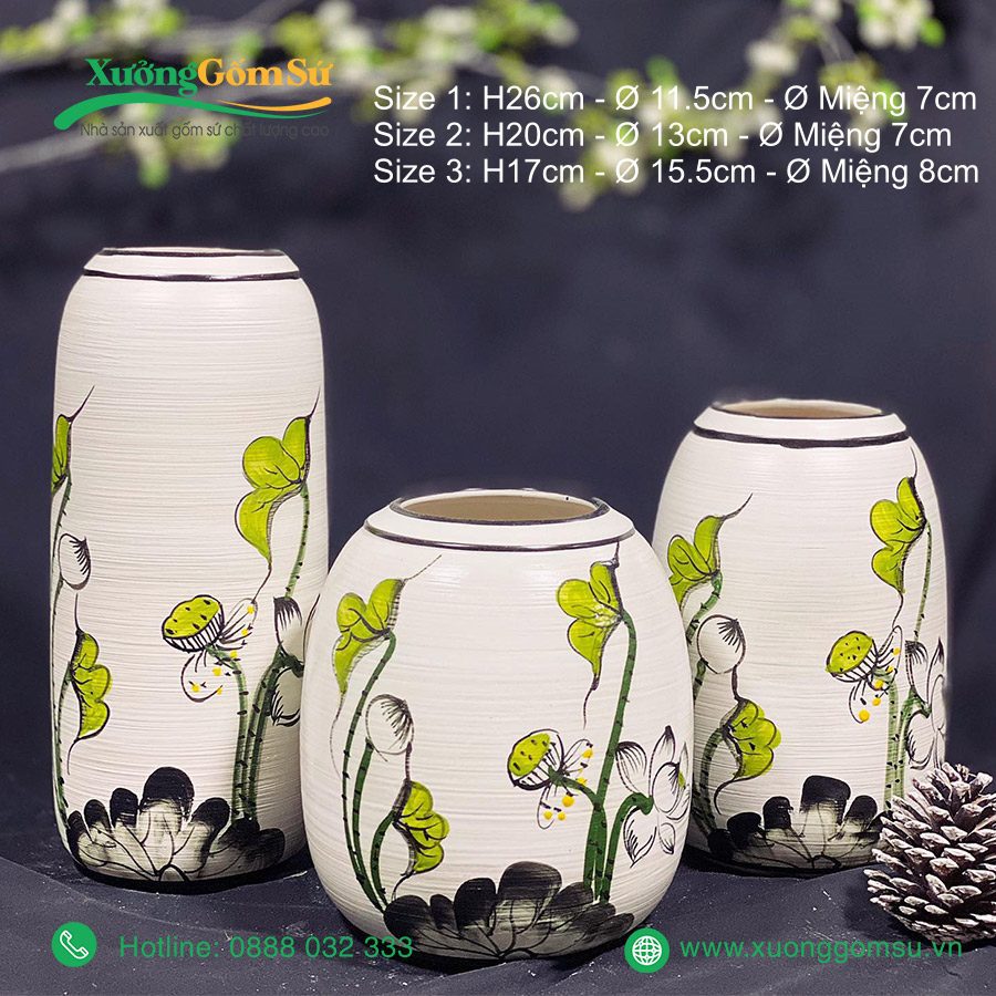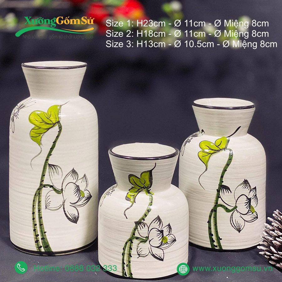 | Tên Sản phẩm | Lọ Hoa Gốm Sứ Bát Tràng Vẽ Tay Hoa Sen Chuồn |