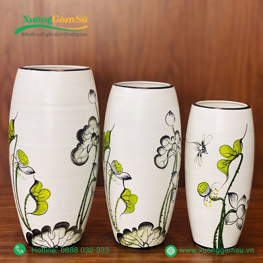 Lọ Hoa Gốm Sứ Bát Tràng Vẽ Tay Hoa Sen Chuồn – Sự kết hợp hoàn hảo giữa truyền thống và hiện đại