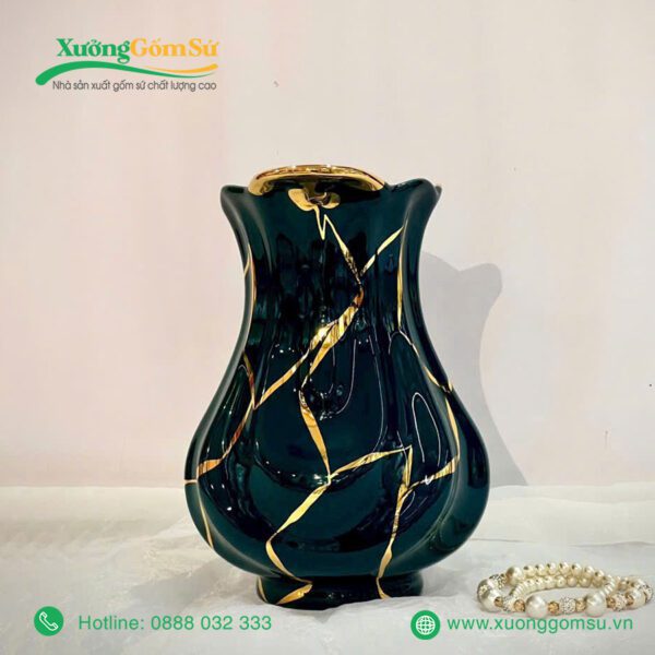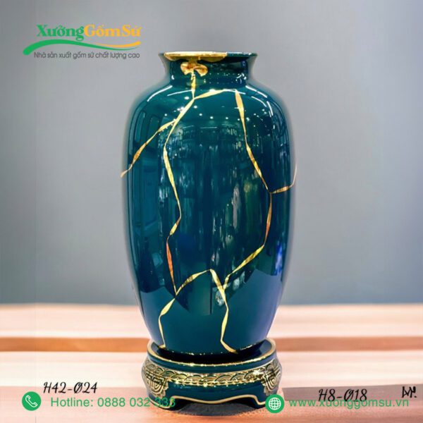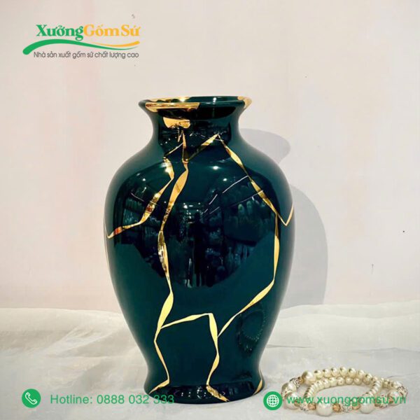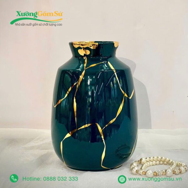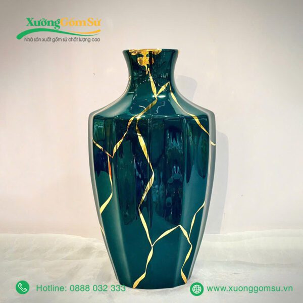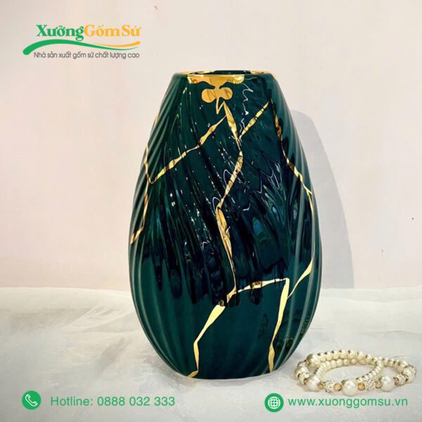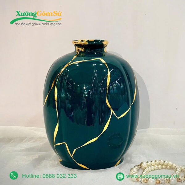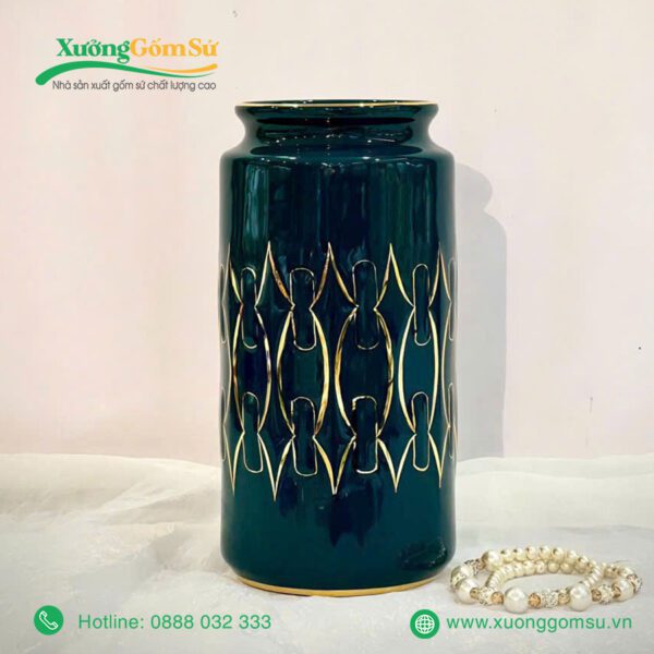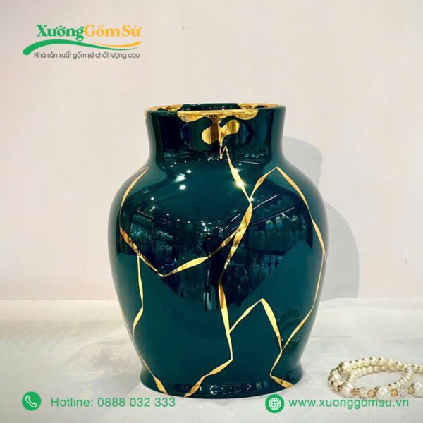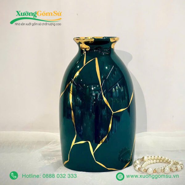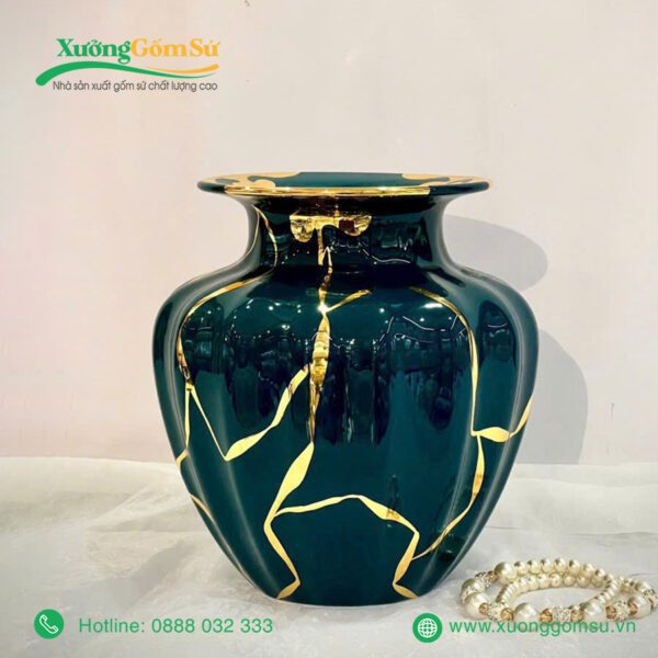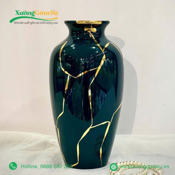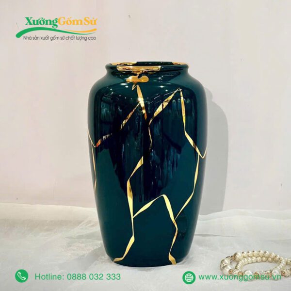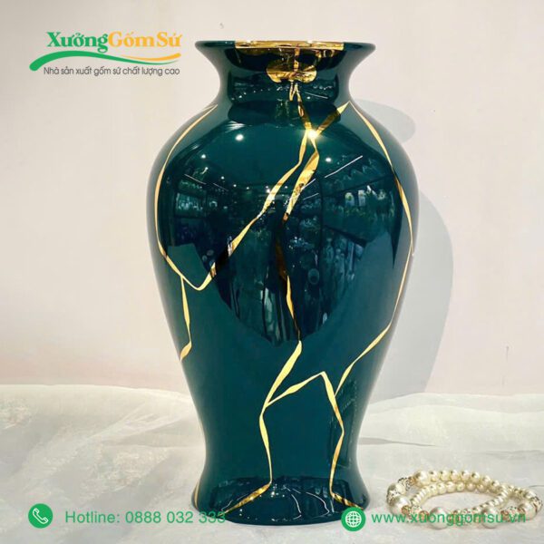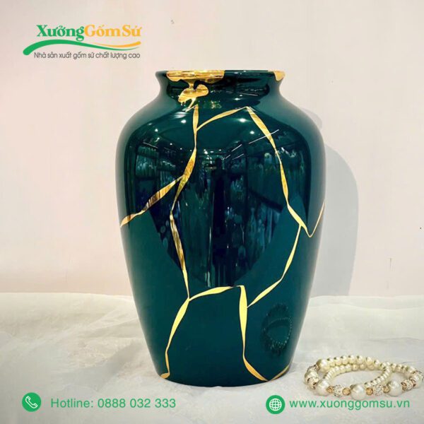 Lọ Hoa Men Lục Bảo Vẽ Vàng là một tác phẩm nghệ thuật rất tinh tế và sang trọng. Lọ hoa sứ men lục bảo là một tác phẩm nghệ thuật độc đáo, kết hợp hài hòa giữa truyền thống và hiện đại.