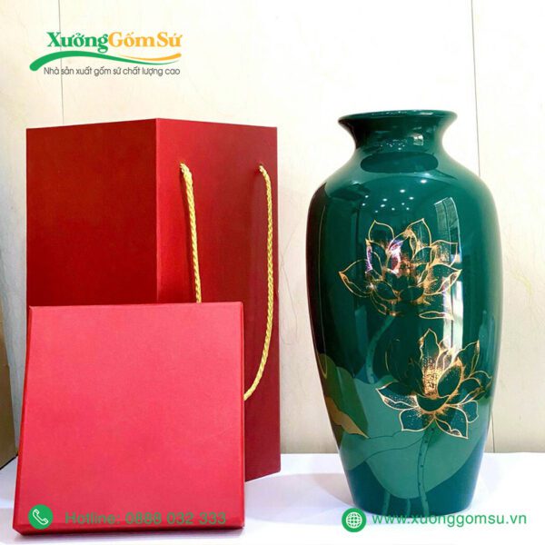 | Tên Sản phẩm | Lọ Hoa Men Màu Họa Tiết Vẽ Vàng In Logo Đại Hội |