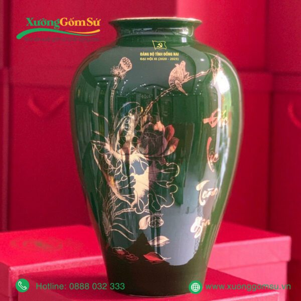 Lọ Hoa Men Màu Họa Tiết Vẽ Vàng In Logo Đại Hội là một lựa chọn hoàn hảo để làm quà tặng trong các sự kiện quan trọng như đại hội, hội nghị, kỷ niệm…