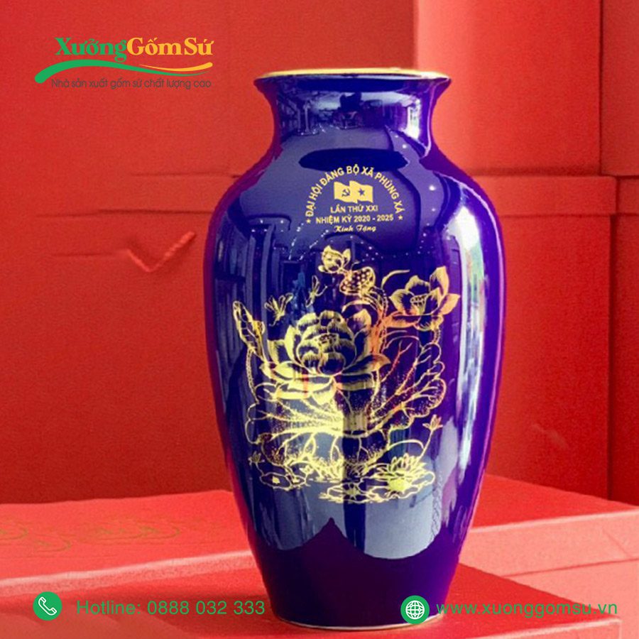 Lọ Hoa Men Màu Họa Tiết Vẽ Vàng In Logo Đại Hội là một lựa chọn hoàn hảo để làm quà tặng trong các sự kiện quan trọng như đại hội, hội nghị, kỷ niệm…