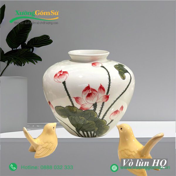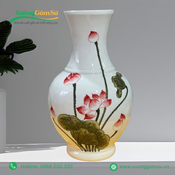 | Tên Sản phẩm | Lọ Hoa Sứ Bát Tràng Họa Tiết Hoa Sen Hồng Lá Xanh |