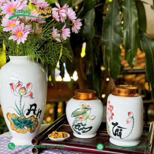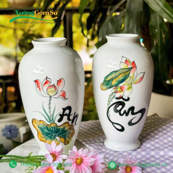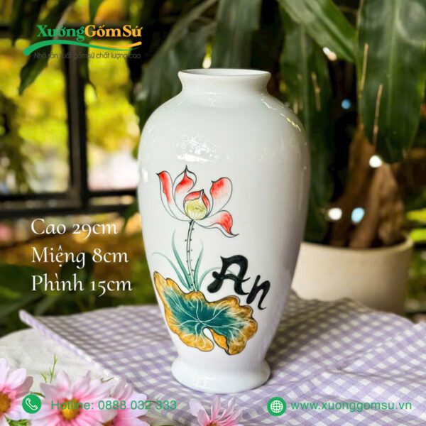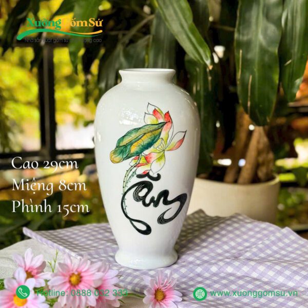 | Tên Sản phẩm | Lọ Hoa Sứ Trắng Vẽ Tay Hoa Sen Tâm An |