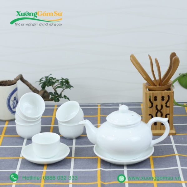 | Quy cách đóng gói sản phẩm: | 1 ấm, 6 chén, 1 khay sứ |